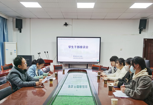 为了进一步加强我院的学风建设,了解学生的思想状况和学习生活情况。3月28日中午,教育科学学院在教育大楼1317会议室召开了学生干部座谈会。我院团总支书记王浩,辅导员秦姗姗,团学主要干部参加了本次会议。