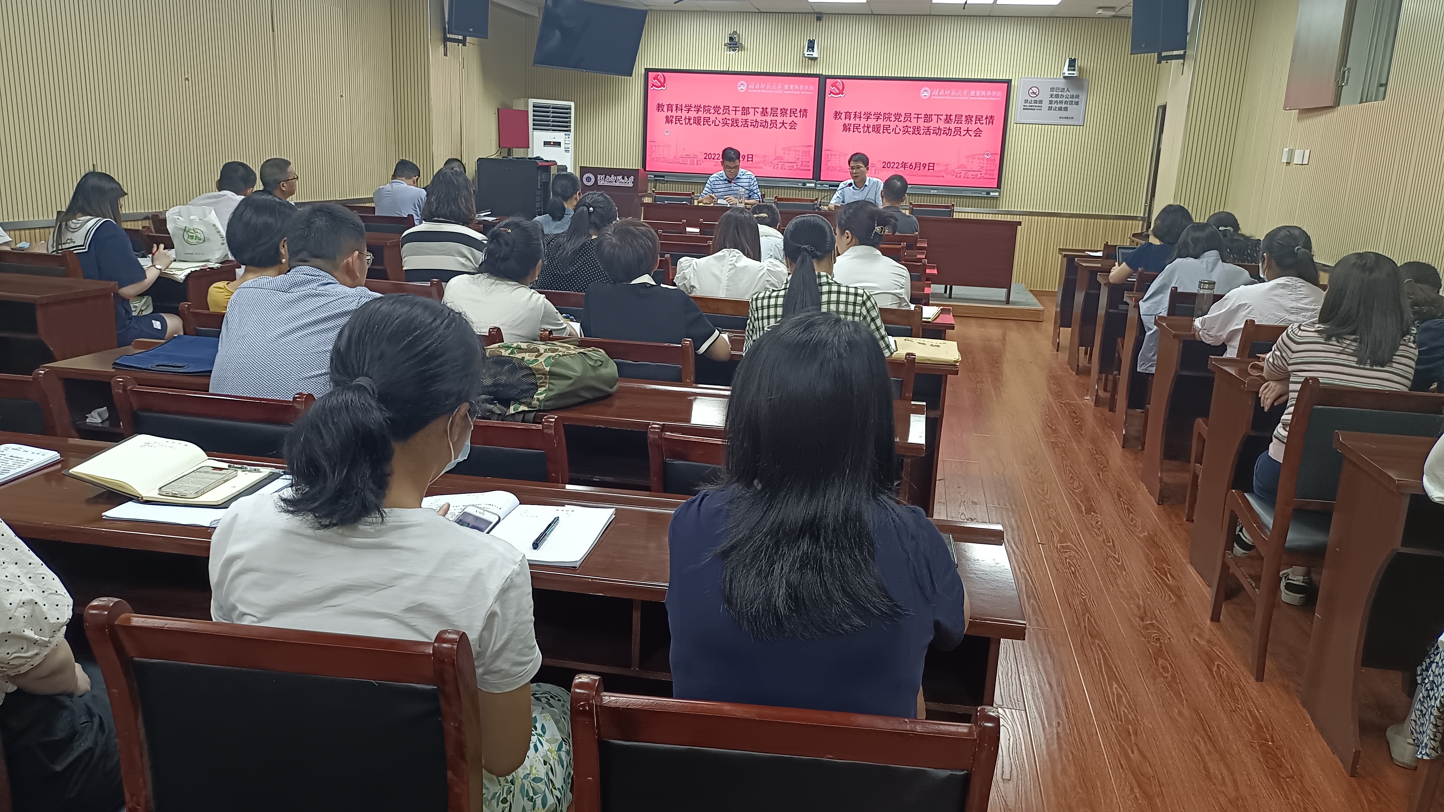6月9日下午4点,我院在教育大楼1316A会议室召开下基层察民情解民忧暖民心实践活动动员大会,传达学习党中央、省委和学校党委下基层察民情解民忧暖民心实践活动相关会议和文件精神,并对我院相关工作进行了全面部署。会议由学院党总支书记徐明波主持,全体党员参加了会议。
