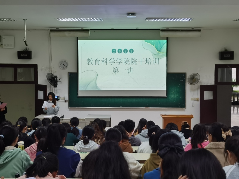 为了促进见习干事们之间的交流与沟通,让见习干事们熟悉部门工作,明确工作内容,更好的完成其工作任务,教育科学学院于10月8日下午在教育大楼1j11和1j12举办了院干培训第一讲。其中,1j11为主会场,1j12为副会场。全体学生干部、见习干事以及新生班级负责人参加了本次培训,青年传媒中心见习干事担任本次活动的主持人。