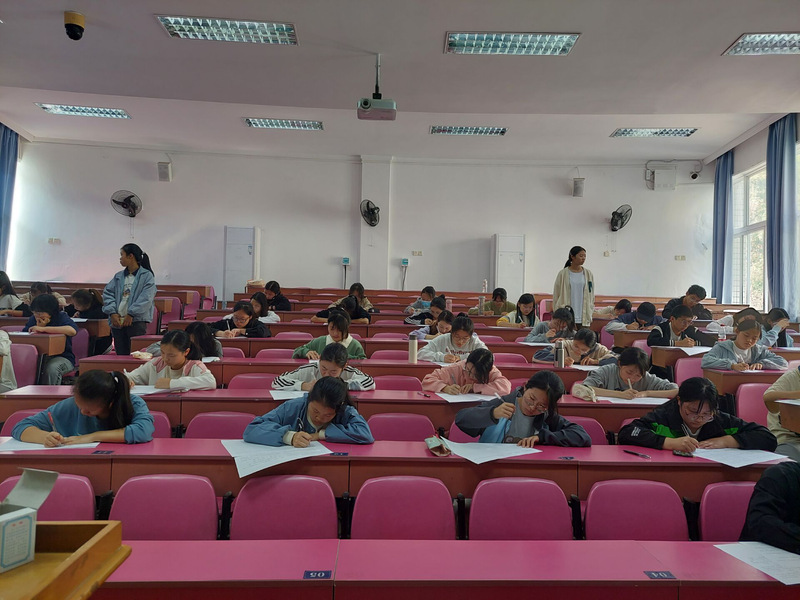 首先,开考前十五分钟同学们在监考员的引导下有序摆放私人物品并就坐准备考试,开考前五分钟监考员雷伍娇宣读考场纪律,规范考试秩序。接着,监考员分发试卷,考试正式开始。随后,同学们奋笔疾书,认真作答,展现出同学们诚实,守信的考场精神。最后,同学们按时上交试卷并有序离场,教育科学学院第三十六期团校结业考试就此结束。