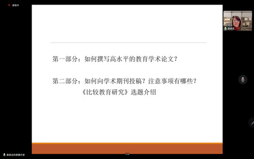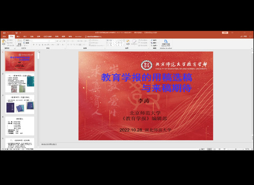 本次系列活动邀请了《教育发展研究》的编辑部主任林岚老师在线开展了以“什么是好的学术表达:编辑的视角”为主题的讲座,从编辑的视角出发,向大家阐述了如何写作与表达;北京师范大学《教育学报》编辑部主任、教育学博士李涛以“《教育学报》的用稿选稿与来稿期待”为主题开展线上讲座,强调了论文选题与题目的重要性与注重在撰写论文时的问题意识;北京开放大学李本友教授在线开展了《课题申报与申报书规范撰写》为主题的讲座,主要从如何选题、课题申报的准备、课题申报的基本程序、课题申报书的规范撰写和评审课题的“九看”五个方面展开讲解;北京师范大学副编审、《比较教育研究》期刊社编辑曾晓洁主任开展了主题为“教育学术论文的写作与发表”的线上学术讲座,详细介绍了一篇高水平的教育学术论文的写作规范、发表条件、注意事项等。