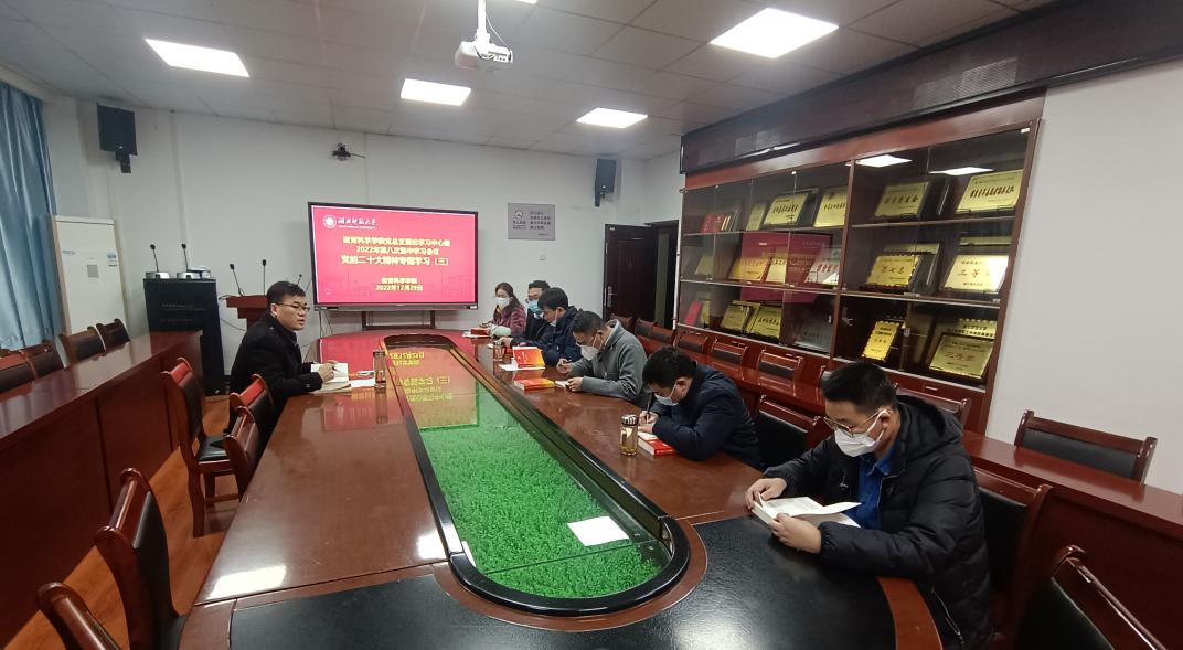 20221229日下午,教科院党总支在教育大楼1317A会议室召开了理论学习中心组2022年第八次学习会议,专题学习党的二十大报告辅导读本。会议由院党总支书记徐明波主持,全体党总支成员和党政办主任参加了会议。
