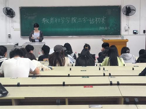 为渲染笔墨风采,弘扬中华优秀传统文化,教育科学学院学生会学习部联合学风建设部和新闻媒体中心于4月13日在教育大楼1j12举行了“三字一话”初赛。参加本次活动的有各位评委及全体参赛人员。