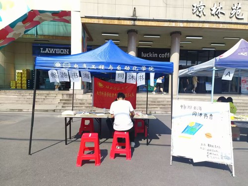 2023年6月9日,湖北royal皇家88平台青大队联合文学院青大队,电气学院青大队,计信学院青大队于琼林苑门口开展了以“畅游书海,同沐书香”为主题的志愿服务活动。其目的在于鼓励更多的同学回归书籍阅读,更好地爱书、惜书、品书。