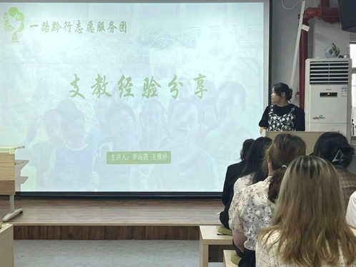 会议伊始,教育科学学院第二十三届团总支实践部部长李梦喋上台分享支教经验,她表示支教队员应树立团队意识,关心学生,做学生的良师益友时刻牢记自己的职责,认真学习有经验的老师的授课方法和技巧,认真备课、因材施教。随后,文学院实践负责人代表谭梦媛、陈希、冯丹妮依次作出经验分享,她们结合个人支教经验,从前期准备、教学工作、宣传工作、后期整理四个方面介绍了支教工作中具体的处事方法、管理原则等。接着,一路黔行志愿服务团实践负责人代表罗海霞、王雅婷上台展示支教风采和案例,她们从多方面详细分享了支教实践活动中的工作要求和注意事项,强调撰写计划的重要性和队员与学生的安全问题。教育科学学院实践负责人苗然城市与坏境学院实践负责人钱心原分别上台发表了深刻感想,针对经验分享并结合学院实际情况展开了工作畅想。会议最后,经济管理与法学院常委王偲作总结讲话,她对各院各团队实践负责人所作出的宝贵的经验分享表达感谢,并号召大家积极将理论与实践相结合,扎实推进支教工作的顺利开展。
