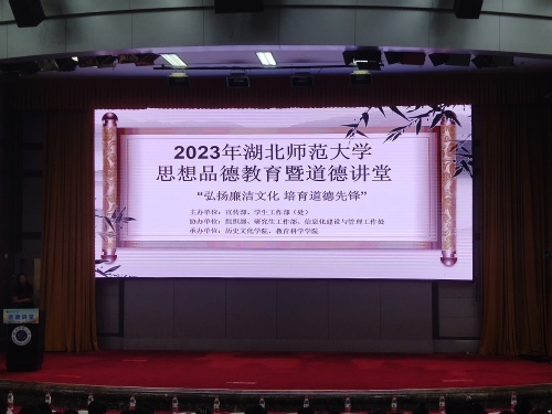 为加强新生的思想品德教育,进一步提升新生的道德素养,推进校园廉洁文化建设,教育科学学院与历史文化学院于9月11日上午在教育大楼开展“弘扬廉洁文化,涵养时代先锋” 湖北师范大学思想品德教育暨道德讲堂活动。本次活动的主办单位为宣传部和学工处(部),协办单位为组织部、研究生工作部及信息化建设与管理工作处,承办单位为历史文化学院与教育科学学院。教育科学学院与历史文化学院23级全体新生参加了此次活动。