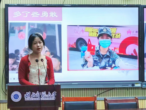 会议伊始,秦姗姗老师上台发言,她表示此次分享会的目的和主题是通过退役学生对军营生活的分享,来激发大学生参军入伍的热情。接着,陈诗杰学姐上台进行自我介绍,分享自己的军旅生涯,并通过图片和视频的形式向同学们讲述了退伍复学后学习和生活的情况,促进同学们进步了解军营内及退役后的生活。紧接着,对军营充满向往的同学向学姐询问军营生活的相关问题,陈学姐逐一回答同学们的问题并对有意参军入伍的同学表示鼓励和支持。