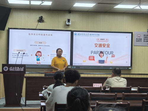 会议伊始,教育科学学院校园安全部负责人王欣如强调了安全信息员的重要性,接着开展了安全主题方面的学习,如秋季传染病的预防,宿舍用电等贴近生活方面的安全问题。随后,安全信息员进行了经验交流,对学院安全问题有了初步了解。最后,伊力扎提老师进行总结发言,他分享近期发生的安全案例,帮助各位安全信息员更好地提高履责意识和安全保护意识,及时发现并上报校园安全隐患,加强与同学之间的沟通,做好学生与学院之间沟通的桥梁。