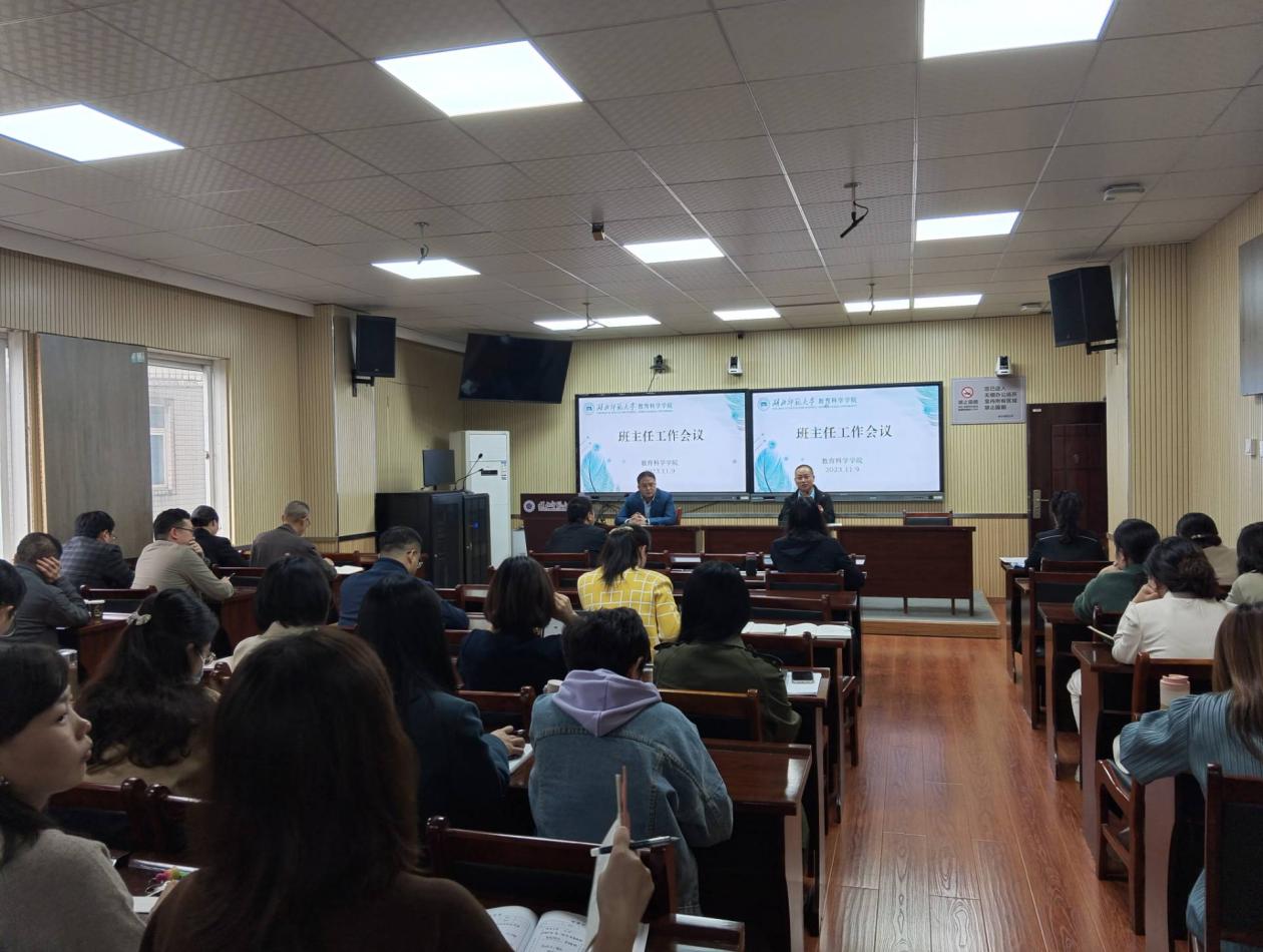 119下午教育科学学院在教育大楼1316A召开学院班主任工作专题会议全体班主任及辅导员参加,会议由党委副书记刘广兵主持。