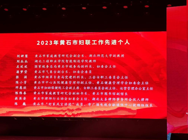 3月7日,黄石市纪念“三八”国际妇女节114周年主题活动在磁湖剧院举行,市妇女联合会发布了《关于全市妇联工作成绩突出的先进集体、先进个人的表扬通报》,70位女性和30个集体受到表扬,其中,我校教育科学学院学前教育系刘妍慧老师荣获黄石市妇联工作先进个人称号。
