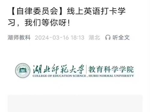 为了巩固同学们的英语基础,鼓励与引导同学们认真备战四、六级英语考试,加强学院学风建设。教育科学学院学生自律委员会学风建设部联合新闻媒体中心于3月25日~3月31日开展英语学习打卡活动。