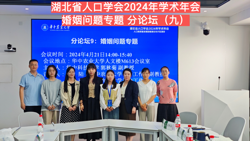 4月21日,湖北省人口学会2024年学术年会在武汉召开,会议由湖北省人口学会、华中农业大学主办,华中农业大学文法学院承办。华中农业大学党委副书记廖济忠、湖北省卫生健康委员会二级巡视员江中三、中国人口学会副会长陆杰华出席会议并致辞。我院李一帆老师、刘妍慧老师和王冲老师参加会议并应邀在分论坛汇报研究成果。本次会议为线下会议,由大会发言、专题论坛交流和海报展示等形式相结合的方式,主要围绕生育质量、婚姻质量、留守儿童和留守经历等主题进行深入研讨与交流,每个论坛设主持人和点评人。