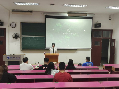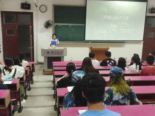 为传承弘扬中华优秀语言文化,推动国家通用语言文字普及,教育科学学院学生会学习部于2024年9月15日晚上在教育大楼1J22举办普通话演讲比赛,本次比赛由学习部负责人带领开展,由湖北师范大学校大学生艺术团相声部负责人陈嘉诚、2023年一二九朗诵队队员齐振毅、苏登晶担任评委。