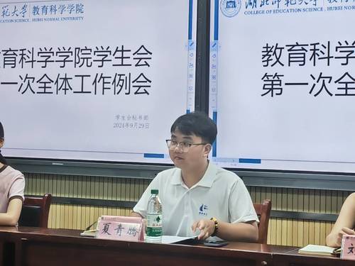 为进一步落实本学期工作计划,对已完成的工作及活动进行总结和反思。教育科学学院学生会于9月29日下午在教育大楼1316A举办了本学期第一次工作例会。出席本次会议的有辅导员夏青腾,学生会主席团刘诗雅、刘施雨及学生会各部门负责人。