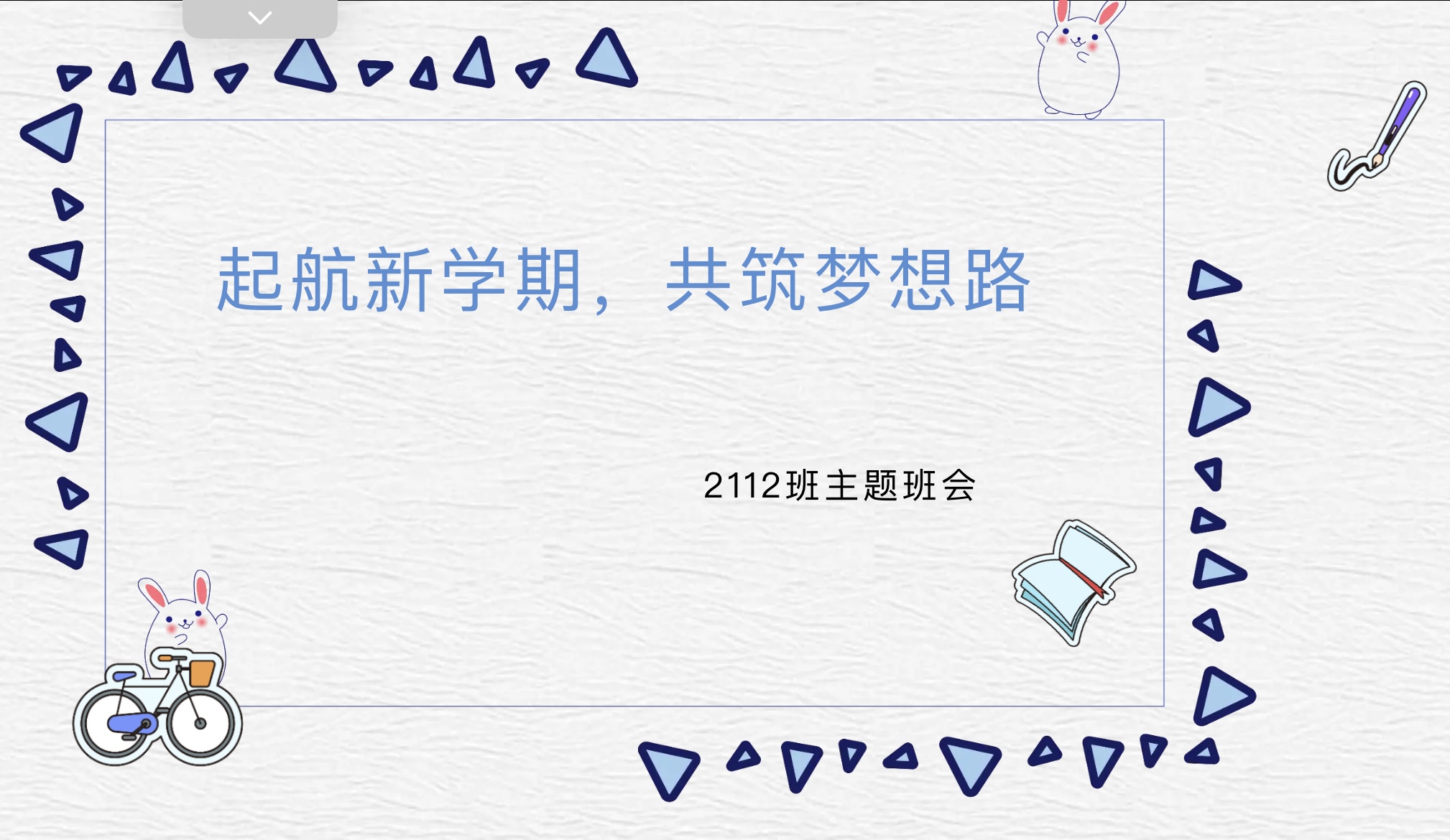 为促进开学教育和学风建设工作的开展,提高同学们的安全意识,营造更好的班级氛围。10月10日,2112班班主任伊力扎提老师和全体同学召开了以“启航新学期,共筑梦想路”为主题的线上班会。