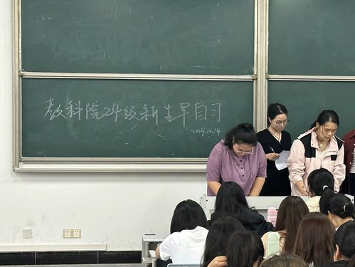 为了帮助24级新生更好地适应大学的学习节奏和生活环境,教育科学学院学习部于10月14日上午在科技大楼的9501和9502教室成功举办本学期第一次新生早自习活动。此次活动由学习部负责人王瑞霜和陈俣烨亲自带队,与部门的见习工作人员共同执行查勤任务。