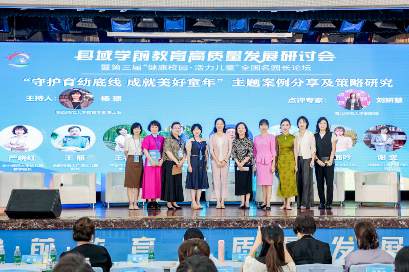 会议议程包括开幕式、专家主旨讲座、名园长主题分享、主题圆桌论坛和幼儿园参观,主要涵盖幼儿园课程建设、县域学前教育高质量发展、农村学前教育高质量发展、幼儿健康教育和体育游戏等主题。圆桌论坛二的主题是“守护育幼底线成就美好童年”主题案例分享及策略研究。刘妍慧副教授担任点评专家,园长们作为发言嘉宾围绕儿童的权利保障和育人目标的实践,分享展示各个幼儿园保护儿童权利和促进健康成长的具体做法,以及家园社协同育人机制走深走实的实践经验。