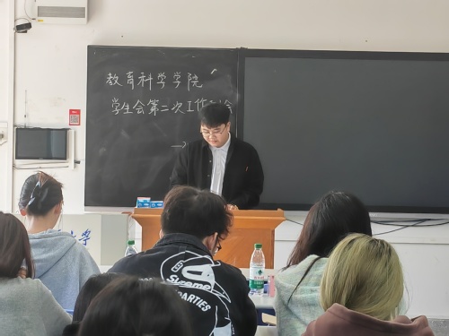 为对本月已完成的学生工作进行总结和反思,并对下月规划的活动进行细致调整,教育科学学院学生会于10月24日下午在教育大楼1203开展第二次工作例会。出席本次会议的成员有辅导员夏青腾,学生会主席团成员刘诗雅、刘施雨及学生会全体部门负责人。