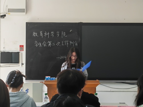 会议伊始,学生会各部门逐一汇报了本月的工作内容及工作进展,并对已经结束的活动进行深入的总结与反思。这一环节不仅促进了各部门之间相互了解,也为未来共同推动学生会发展打下坚实基础。随后夏青腾作总结发言,高度评价各部门在推进工作中所展现出的扎实态度;他还强调,学生会作为一个团结的集体,需要各部门要凝聚共识,携手合作,以确保更好地为教育科学学院师生服务。最后,刘诗雅对近期工作中出现的常规问题进行细致总结,她指出了各部门在执行任务过程中存在的不足之处,并强调通过不断改进和优化工作流程,各部门可以共同推动学生会的工作质量迈向更高的水平。