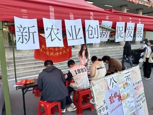 本次摆点活动的开展,不仅锻炼了社会实践调查大队队员们的沟通交流能力,增强了同学们对新农业发展现状的了解,也为解决新农业创新发展问题贡献青春力量。(通讯员:徐志湘袁嘉宁)