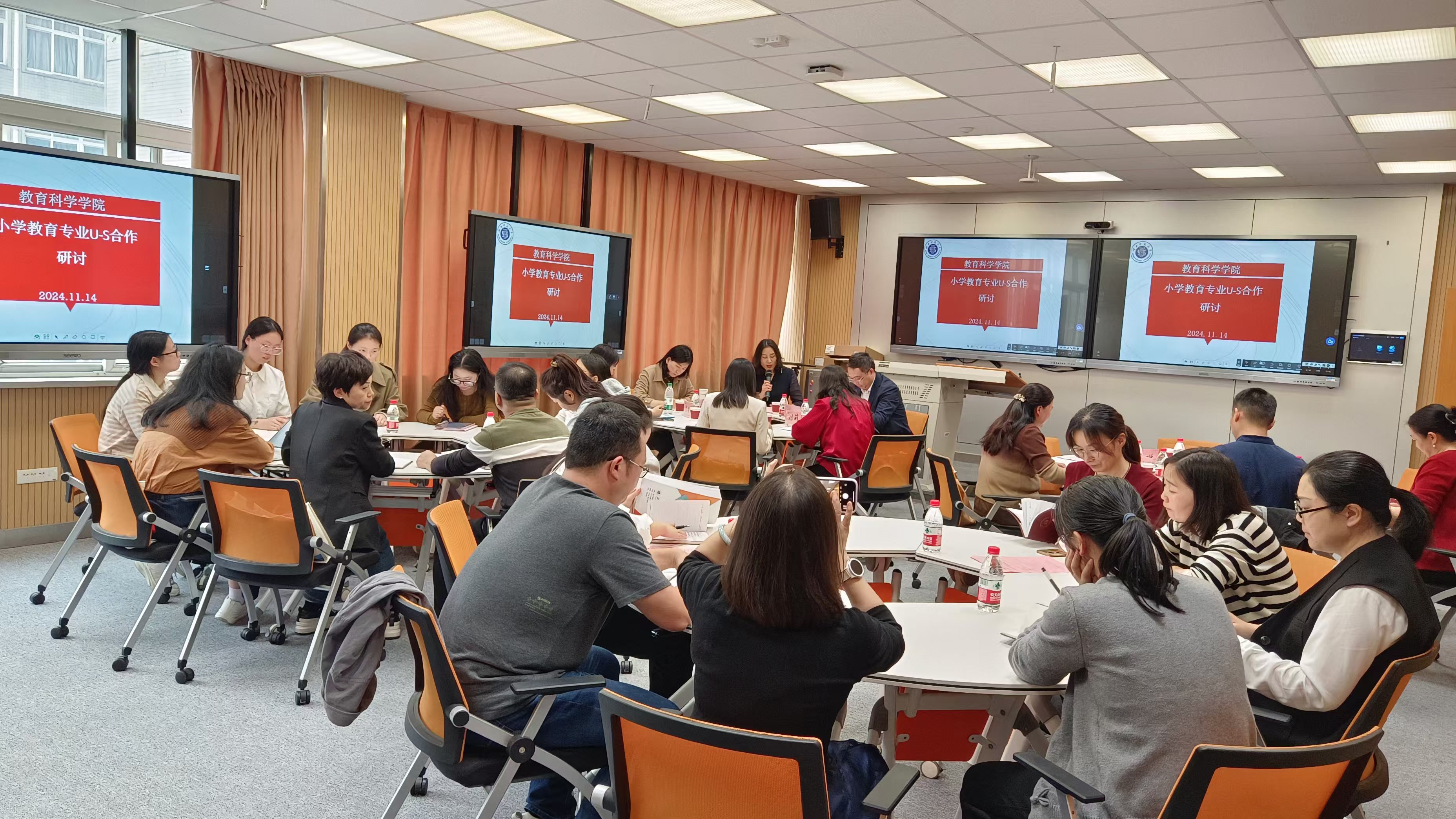 在小学教育专业的U-S合作研讨环节中,副院长张小菊详细介绍了U-S合作面临的新挑战、解决这些挑战的方式以及保障合作的方式。王志芳、胡凌云两位校长代表也纷纷表达了自己的见解,以及对今后U-S合作的期盼。