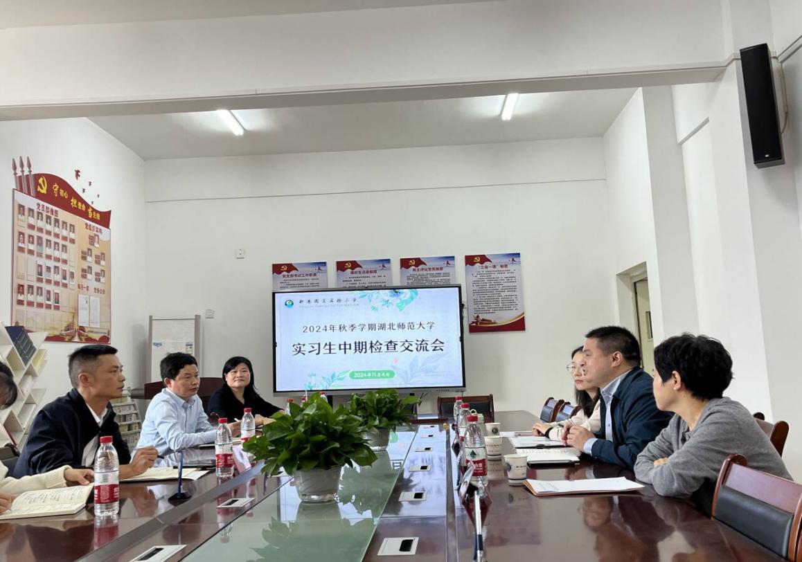 为进一步落实立德树人根本任务,全面了解实习生在实习基地的学习、生活情况,2024年11月4日,湖北师范大学教科院科研副院长崔波、刘学利副教授、小学教育系系主任赵幸博士前往新港园区实验小学开展实习中期检查工作。新港园区实验小学梅永林校长、费兰霞主任、全体实习指导教师及实习生代表参加了此次会议。
