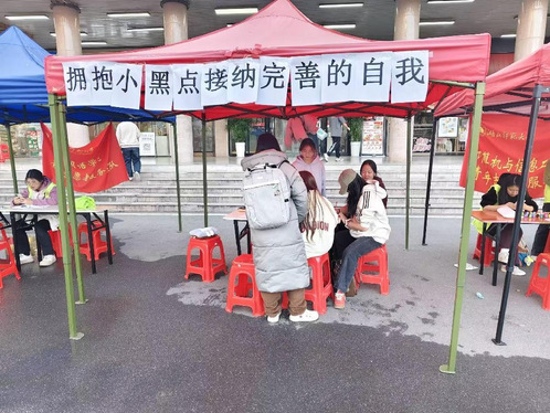 为了使同学们更好地认识自己的缺点,接纳不完美的自我,增强自信心和幸福感,教育科学学院学生会心理部于1130日在琼林苑门口举办了以拥抱小黑点—接纳完整的自我为主题的活动,部有兴趣的学生参加了此次活动。