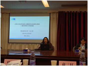 我院副院长张小菊教授、小学教育系主任赵幸博士以及小学教育专业研究生胡婷参加了此次大会。在“师范生培养改革创新与研究生论坛”分论坛中,张小菊教授作了题为《大学小学合作培养师范生的实践与探索——湖北师范大学的经验》的报告,研究生胡婷作了题为《体验式学习促进小学生数学元认知能力的实验研究》的报告。