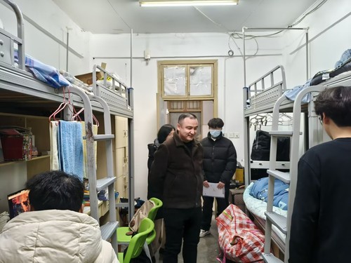 为保障学生安全返校,排查寝室安全隐患,并为新学期做好准备工作,教育科学学院宿舍管理部于2月16日下午对学生宿舍进行走访慰问。参与本次活动的有教育科学学院党委副书记刘广兵,副院长张小菊,辅导员张琦、秦姗姗、刘丽娟、伊力扎提、夏青腾以及各班班主任和学生干部。