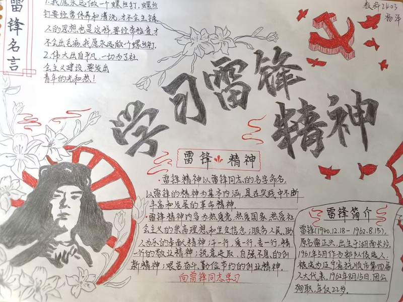 本次“绘雷锋精神,筑青春担当”手抄报活动的顺利开展,不仅向青年学子弘扬了无私奉献的雷锋精神,还有助于营造良好的团结互助氛围,为构建和谐校园、培育时代新人贡献积极力量。(通讯员:向玉芹)