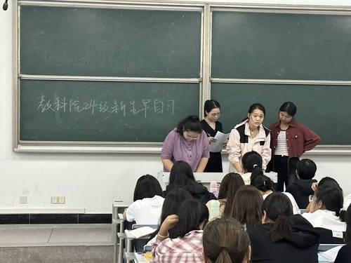 为了帮助大一新生更好地适应大学生活,教育科学学院学习部于6月6日上午在教育大楼1j12、1j13开展24级新生2024-2025年度第二学期最后一次早自习。学习部部门负责人陈琳带领相关工作人员开展查勤。